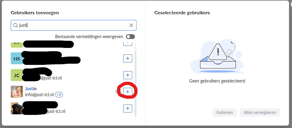 3. Klik op "+ toevoegen" en selecteer de gebruiker wie toegang moet krijgen.