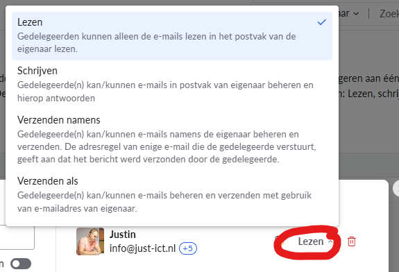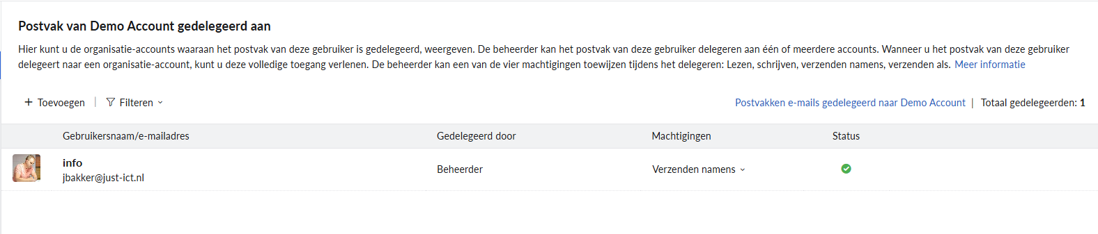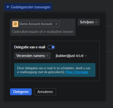 Je kan gebruikers toegang verlenen tot elkaars mailbox. Dit heet delegeren. Je kan maximaal 10 gebruikers toevoegen aan een mailbox voor delegeren. Wil je meer gebruikers koppelen? Dan moet er een gedeeld postvak worden gemaakt.