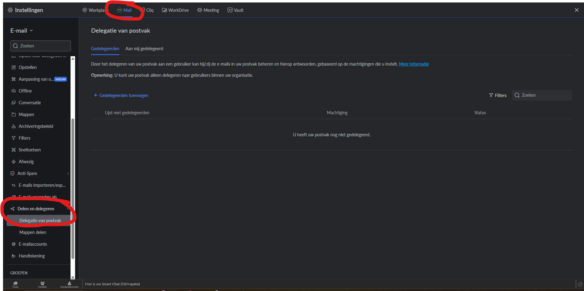 2. Vouw postvakinstellingen open en klik op "Gedelegeerd aan".