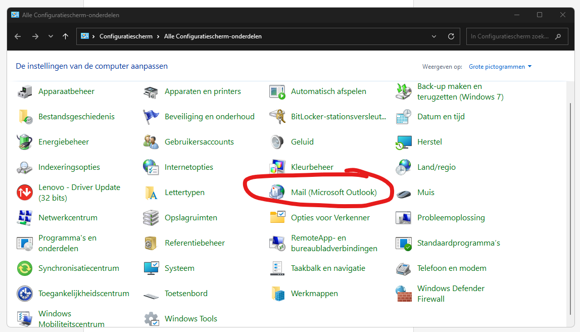 Zoek naar "Mail (Microsoft Outlook)" en klik hier op.