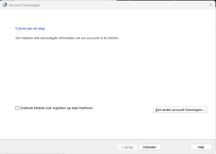 Je ontvangt nu een bevestiging dat het koppelen is geslaagd. Je kan nu voltooien of wanneer je nog een account wilt toevoegen klikken op Een ander account toevoegen... klikken.