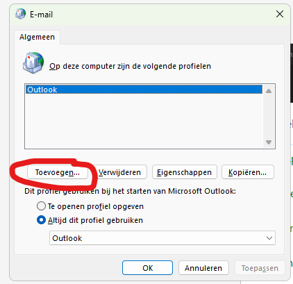 Klik op ""Toevoegen" om een nieuw profiel aan te maken: